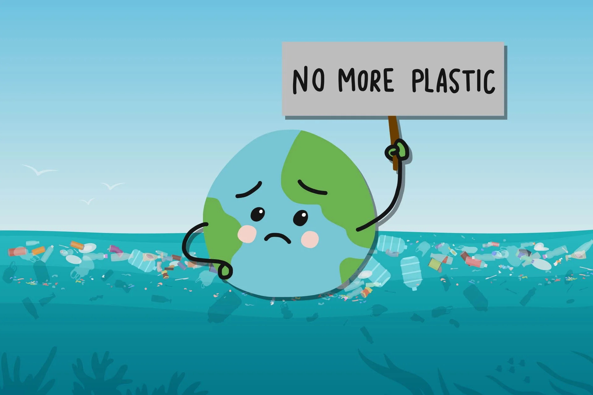 El plástico no se descompone como otros residuos orgánicos. En cambio, se convierte en microplásticos. Algunos de estos son comidos por peces pequeños y viajan por la cadena alimentaria. Los residuos plásticos matan hasta un millón de aves marinas, cien mil mamíferos marinos, tortugas marinas e innumerables peces cada año. Por supuesto, esto también afecta a los humanos. El estudio de WWF International de 2019 encontró que a lo largo de su vida, los estadounidenses de hoy en día consumen alrededor de 20 kg (44 libras) de microplástico.