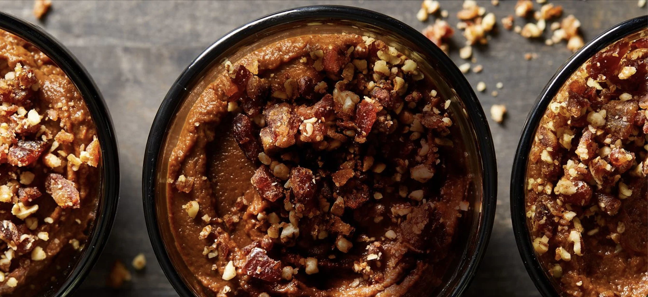 Pudín de chocolate de camote con crumble de nueces