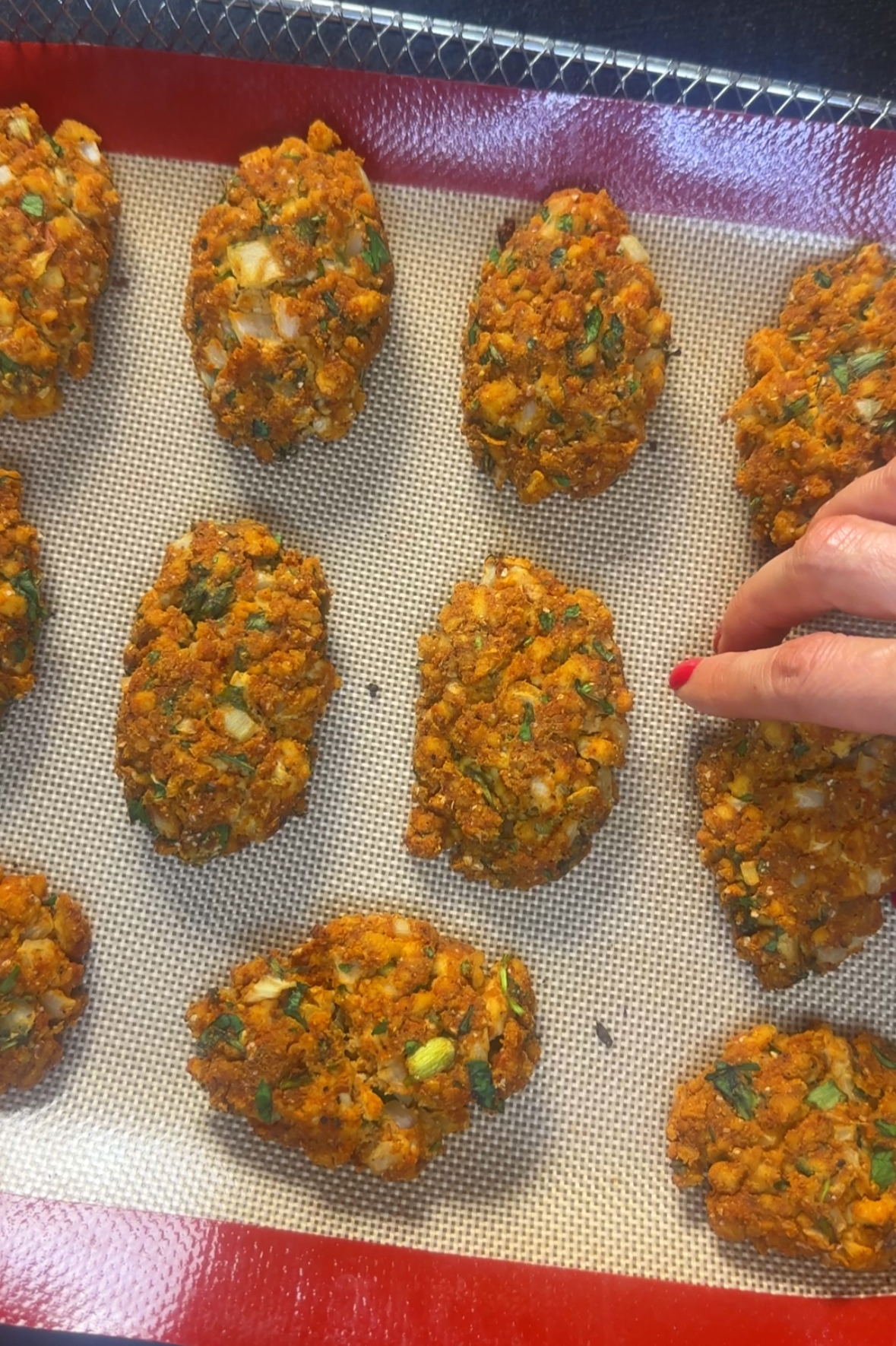 Para kebabs resistentes y bien formados, usá aproximadamente ¼ de taza de la mezcla cada uno. Los tamaños más pequeños se mantienen mejor unidos y cocinan de manera más uniforme.